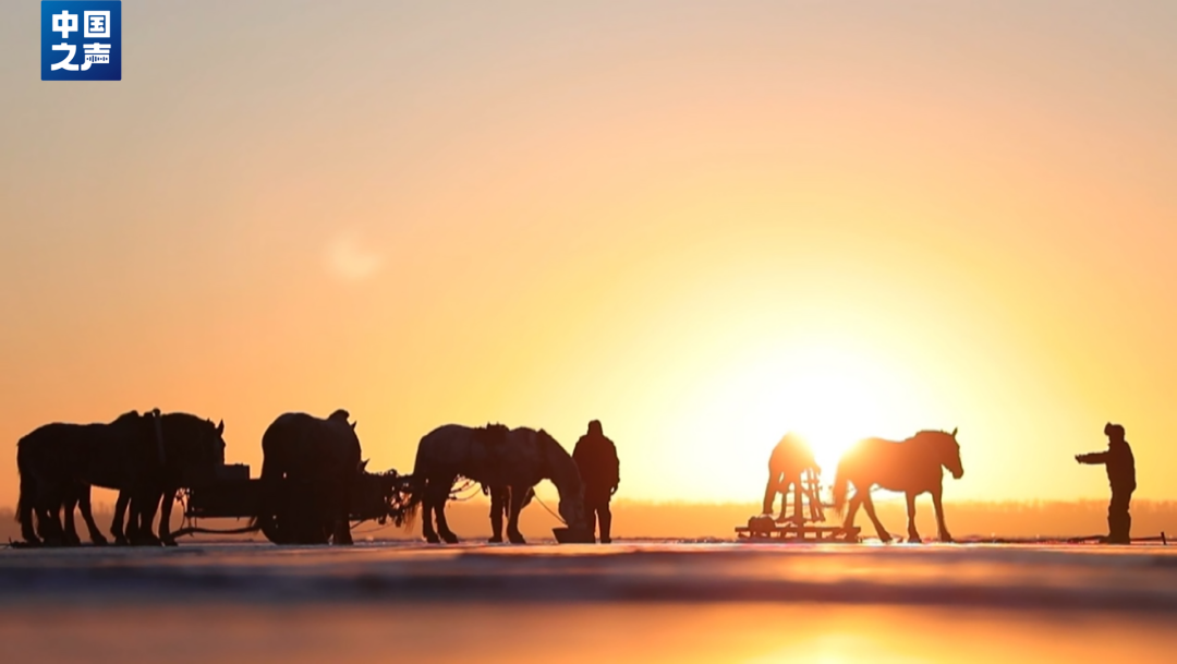 千米大网在水下膨大,张文的视野转到出网口旁的绞盘和马儿身上。零下20℃,渔工轮替在冰面停留,拖拽渔网的力气,主要靠马。