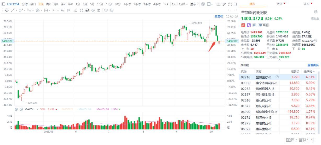 板块内,宜明昂科-B(01541.HK)累跌逾27%,创胜集团-B(06628.HK)累跌超20%,荃信生物-B(02509.HK)、德琪医药-B(06996.HK)等多股大跌。